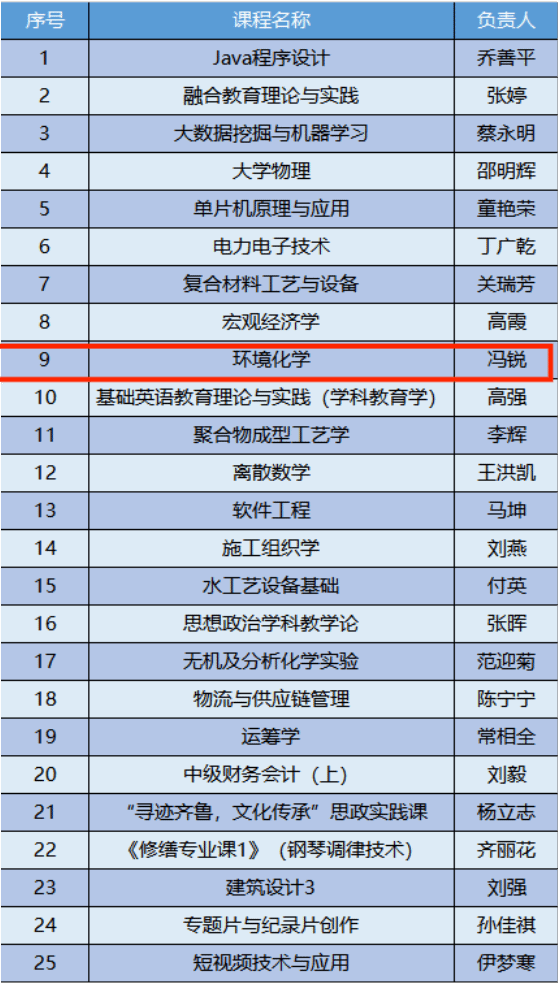 近日,山东省教育厅公布了第三批山东省一流本科课程认定结果,此次省教育厅共确定886门课程为山东省一流本科课程。williamhill获评25门,包括线下一流课程2门、线上线下混合式一流课程18门、线上一流课程1门、社会实践一流课程4门。我院冯锐老师的《环境化学》在线上线下混合式一流课程18门之列,光荣入选山东省一流本科课程。