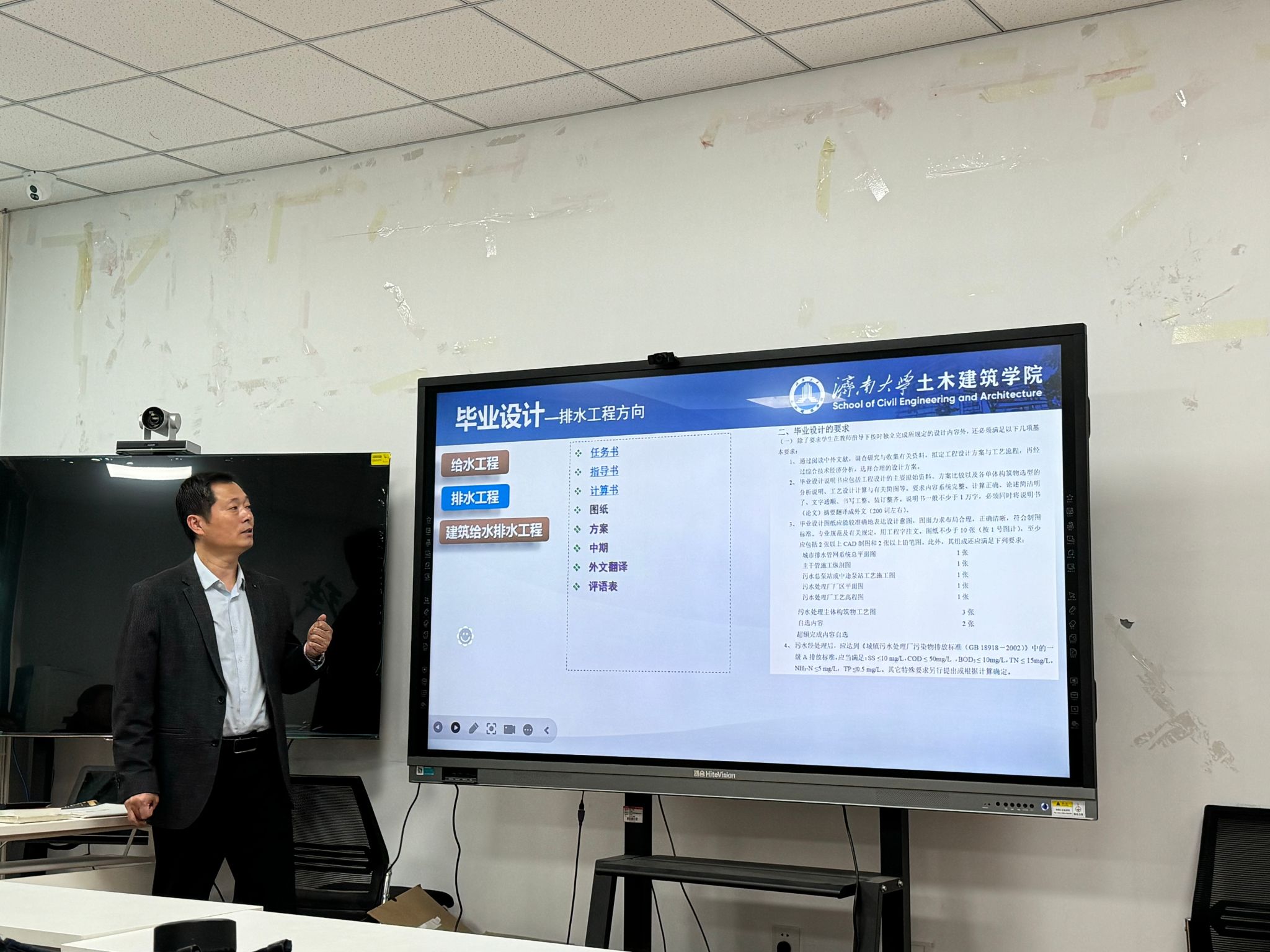 王教授依次从课程设计、毕业设计等方面与参会教师进行了分享与交流。王教授指出课程设计和毕业设计的不同点,并依次从毕业设计选题、任务书、图纸规范化、设计正文撰写等方面进行汇报与展示。在与学院教师交流过程中,指出并解答了设计总则与标准、构筑物计算、工艺路线容易出现雷同等问题,进一步明确了毕业设计规范化的重要性。环境科学与工程系负责人表示将结合专业特点与学科发展进一步强调开展毕业设计的必要性,完善毕业设计标准的制定,严格毕业设计的规范化。