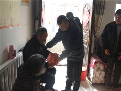 小王同学家住山东省菏泽市巨野县柳林镇榆园村,父母常年在潍坊市打工,收入很不稳定,家中只有爷爷奶奶来照顾较为年幼的妹妹,小王同学还在读大学,无固定收入,家庭开支主要依靠父母打工获得的微薄收入,生活条件十分困苦,入不敷出。了解到王同学的家庭情况后,学院老师们为小王同学一家人送去大米、油等慰问品和一千元慰问金。