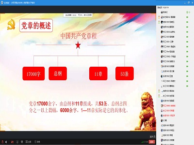 首先高老师向全体成员介绍了入党积极分子培训计划,告诫同学们要充分认识到教育培训的重要意义,切实保证学习效果,提高个人党性修养。随后张书记以“认真学习党章、严格遵守党章”为主题,从党章的概述、党章的发展历程、十九大对党章的修改三个方面向同学们全面介绍了如何正确学习党章。张书记强调每一位入党积极分子都应扎实学习党章和贯彻党章,提高认识,摆正态度,要牢固树立党章意识,自觉用党章规范自身。最后,张书记向同学们提出以下五点要求,一是不忘初心,强化党员意识,时时刻刻以党员的标准要求自己。二是真学实用,强化党章学习。三是学用结合,强化知识应用性。四是率先垂范,充分发挥模范作用。五是以德修身,强化道德修养。