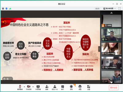 本次专题讲座的主题为“牢记中国共产党的性质宗旨和任务,坚持和加强党的领导”,于书记从中国共产党的性质和宗旨、党的最终目标和现阶段的任务以及坚持和加强党的领导三个方面为大家综合讲述了中国共产党的领导地位和中国特色社会主义制度的优越性。首先,于书记带领大家回顾了党的发展历程,通过1840年以来百年的屈辱历史与新中国成立后的七战七捷对比,从历史的角度为大家分析了中国共产党领导地位是在长期的革命斗争和建设中形成的。随后,于书记为大家讲解了百年奋斗目标和实现中华民族伟大复兴的任务要求。最后,于书记通过中国近代以来的发展历程与美国等西方国家做对比阐述了中国特色社会主义制度的优越性,要求大家要坚持和加强中国共产党的领导,呼吁大家团结起来,振兴中华!