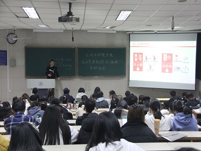 启动仪式上,李文博首先通过两个简短的视频向同学们展示了几起高校火灾真实案例,引起大家对消防安全的重视。提醒大家千万不能轻视消防安全,疏忽防范。随后,李文博从火灾的特性、消防器材的使用、如何进行火灾预防和应急处理等方面向同学们全面科普消防安全知识。通过主讲人的讲解,同学们对于火灾的发生原因、怎样预防火灾、各类消防器材使用注意事项以及如何在火场中进行自救有了更进一步的了解。最后,主讲人向同学们着重强调了如何进行火灾应急处理。当发生火灾时,第一发现人要及时拨打119进行报警,根据火灾现场实际情况选择适当的方式阻止火势进一步蔓延,引导救援人员和车辆进入现场,帮助救援人员疏散无关人员。