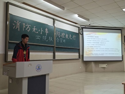 首先,四院代表通过PPT的形式轮流上台进行消防安全知识宣讲,主讲人通过图文结合的方式向同学们讲解了火灾的成因、火灾的预防措施以及发生火灾时的逃生小技巧。随后,主讲人结合真实案例着重讲解了学生宿舍消防安全知识。大学校园是人员高度聚集的公共场所,尤其是学生宿舍,为了确保同学们的人身安全,不要在宿舍内使用大功率电器,不要购买和使用质量不合格的插座、充电器等三无产品,不要在宿舍内储存易燃物品,要自觉学习和掌握火场逃生常识。在接下来的问答环节中,主持人通过有奖竞答的方式对所讲消防知识进行了回顾,同学们积极参与其中,气氛十分热烈。宣讲接近尾声时,同学们在黑板上签下自己的名字,通过自己的行动表示对此次宣讲的支持。最后,主持人呼吁同学们积极向身边的家人、朋友宣传消防安全知识。在日常生活中敲响消防安全的警钟,增强防火安全意识,牢记消防安全知识,预防火灾的发生。
