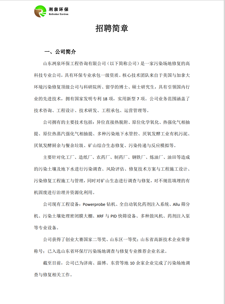 冽泉环保招聘信息