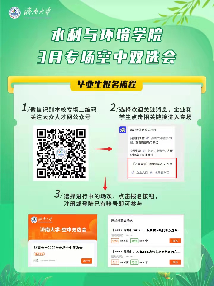 本次双选会采用“大众人才网”网上报名方式,之前未在大众人才网平台注册过的企业和个人需先进行注册完善信息后再报名参与,注册网址www.dazhonghr.com