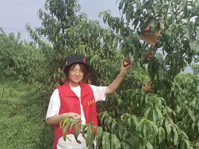 成员韩琳取得当地农户的同意后,赶赴果园,进行桃子采摘活动。抵达地点后,在农户的指导下,韩琳亲自采摘桃子,体会到采摘的不易,进一步坚定了为乡村振兴贡献力量的决心。在采摘结束后,韩琳帮助农户搬运储存桃子,并对农户进行采访。通过采访团队成员了解到,当地桃子的售卖市场情况,为助力农业发展收集了重要素材。