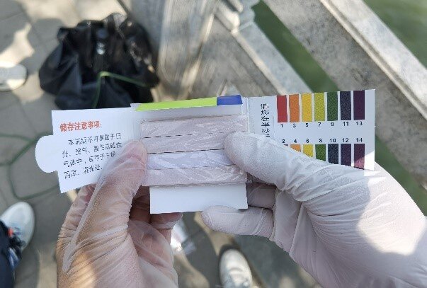 7月26日,团队队长王飞和副队张玉超前往济南市绿行齐鲁公益组织领取资助的水质检测仪器两套。7月27日团队六人6:30集合,巡河10公里,向行人介绍保护水资源的重要性,并进行河湖幸福评价问卷调查。团队成员对小清河和东西工商河汇流处,济泺桥下排污口,济南市动物园排污口等10余处进行了水质检测,检测内容包括PH,化学需氧量(COD),氨氮含量,并通过“趣河边”小程序得出水质观察报告8份。此次,小清河济南段河流巡护、水质检测工作,共取得水样32份,得出化学需氧量(COD)、PH值,以及氨氮含量相关数据96组。取样后,团队成员通过图表分析以及数学模拟的方法对小清河入夏以来的水质状况进行了详细的分析并对结果进行了讨论。结果显示,PH值在7附近波动,COD在5mg/L,NH4-N含量在0.5~1mg/L(ppm)之间,水质整体良好,达到地表水三类水质标准,重点河流水质明显改善,全市水环境质量提升显著。由此可见,随着社会的发展人们保护河湖的意识也得到了进一步提高。