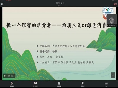 本次宣讲以“做一个理性的消费者”为主题,主讲人首先提出“选择物质主义还是绿色消费”这一问题,随后讲解了“绿色消费”的定义、类型及意义。接着以“钟薛高”为例子讲解“物质主义”,得出物质主义消费观的定义、类型及影响。然后将“物质主义”与“绿色消费”进行对比,提出“为什么物质主义会引发炫耀性消费”的问题并予以解答。在活动的最后主讲人邀请同学们参与“你是物质主义者还是绿色消费者”的答卷,分享了如何做一个绿色消费者,呼吁同学们进行绿色消费。
