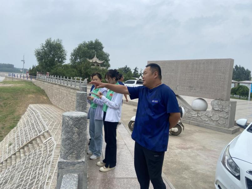 上午,团队成员宋梦、仇茜茜在东平黄河河务局进湖闸管理所工作人员的指导演示下,学习了视频监控巡查的操作步骤,分别对三个重要堤防进行了视频监控巡查。成员们了解到工作人员每天至少进行3次视频监控巡查,并要根据不同时期及情况增加巡查次数。工作人员需做到及时上报巡查发现的问题,若未发现问题也需截图保存,并按照固定格式命名建立文件夹上传至东平河务局网站。随后,在工作人员的带领下,成员们前往石洼分洪进湖闸、39号和35号堤防进行实地参观。工作人员为成员们讲解了石洼闸的建设位置、建设时间、闸型等设施信息、并详细解释了分洪原理。在此过程中,成员们跟随前辈认真学习并详细记录了石洼闸的建筑信息,工作原理等内容。在工作人员的耐心讲解和亲身示范下,团队成员对进湖闸管理所的日常工作有了更进一步的了解,切实体会到分洪闸所承担的保护下游两岸千百万人民生命财产安全的重任。