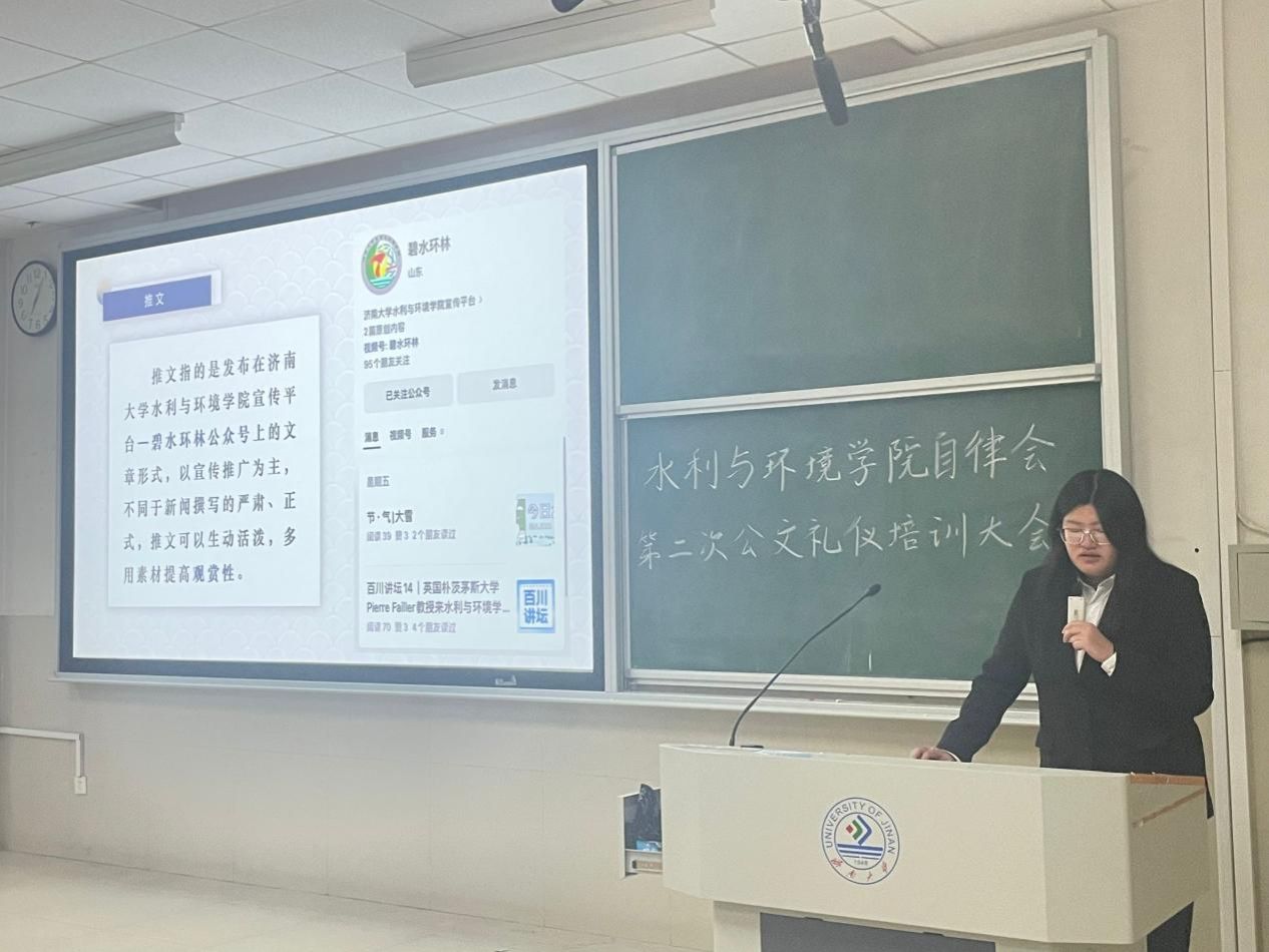 本次公文礼仪培训大会以推文制作为主题,为自律会全体干事讲解了推文制作的一系列问题,提升了各部门进行推文制作的能力,加强了各部门工作的规范性,提升了自律会整体的工作能力,为今后各部门开展工作打下了扎实基础。