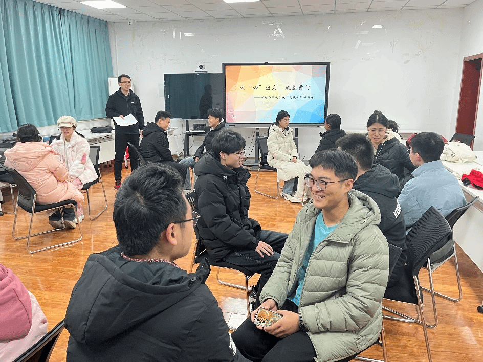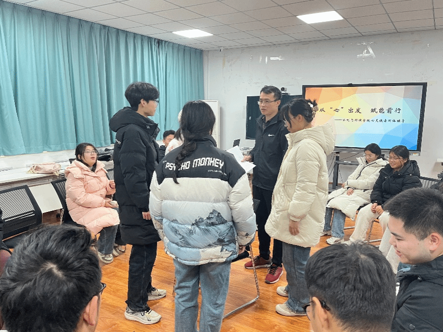 为加深心灵使者之间的相互了解,提升工作能力,12月12日,学院负责心理健康教育工作的张玉虎老师在九教105开展了“从‘心’出发、赋能前行”为主题的团体心理辅导,20余名心灵使者参加了团体辅导。