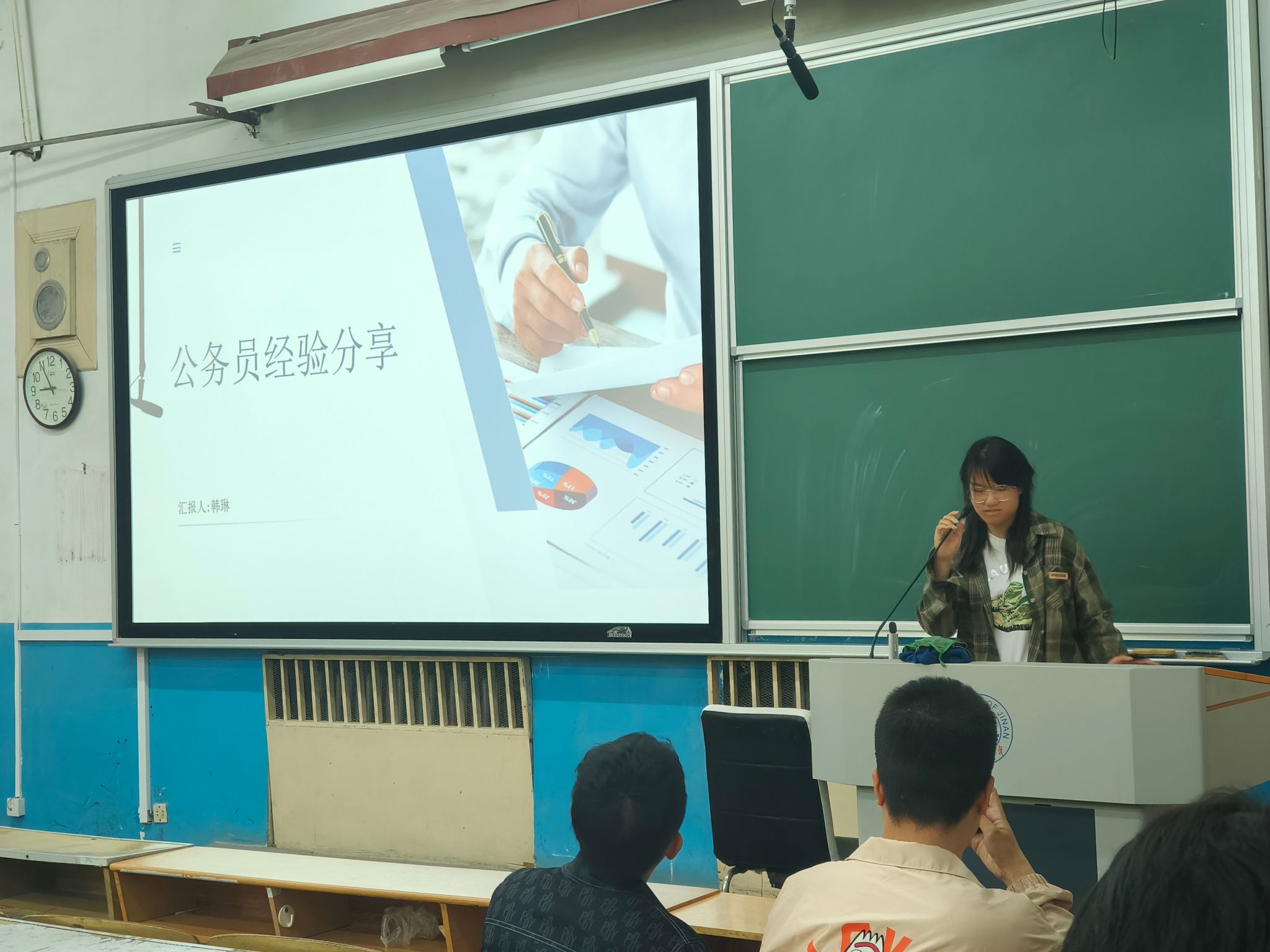 4月27日上午,学院举办“生涯面对面——优秀学子考公经验分享”讲座,邀请了成功考取公务员的2025届毕业生李政通,孙泉涌和韩琳,在梅花馆合05教室,分享上岸山东省公务员、国家公务员、山东省定向选调生的经验。