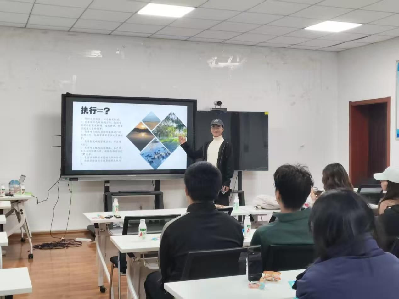 随后,社团四大职能部门负责人依次亮相,详解部门权责与协作机制。社团下设办公室、对外联络部、新闻组、环教讲师团四大部门,各部门功能明确且协同高效。办公室作为社团运营的“中枢大脑”,统筹活动策划、项目推进,同时负责物资清点与人员管理,保障各项事务高效运转;对外联络部化身“资源桥梁”,聚焦赞助洽谈与多方协调,为社团活动筹集资源、拓展对外交流渠道;新闻组担当社团“对外窗口”,以摄影摄像定格活动瞬间,通过新闻编辑输出优质宣传内容,传递环保正能量;环教讲师团则以“知识传播者”的身份,专注黄河保护录播课的组织与开展,用环教行动普及生态保护知识,助力黄河生态守护。