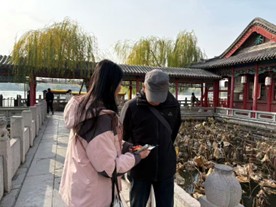 上午9时,志愿者们在大明湖畔集合,手持宣传物料迅速投入行动,三大环节同步开展:同学沿游客步道发放“做黄河的守护者”宣传单;普及黄河生态现状与保护意义,讲解黄河历史文化与生态知识;同时手持垃圾袋,观察并清理草丛、石缝中的烟头、纸屑、塑料包装等杂物,并统一放入就近的垃圾桶中,以实操践行环保理念。