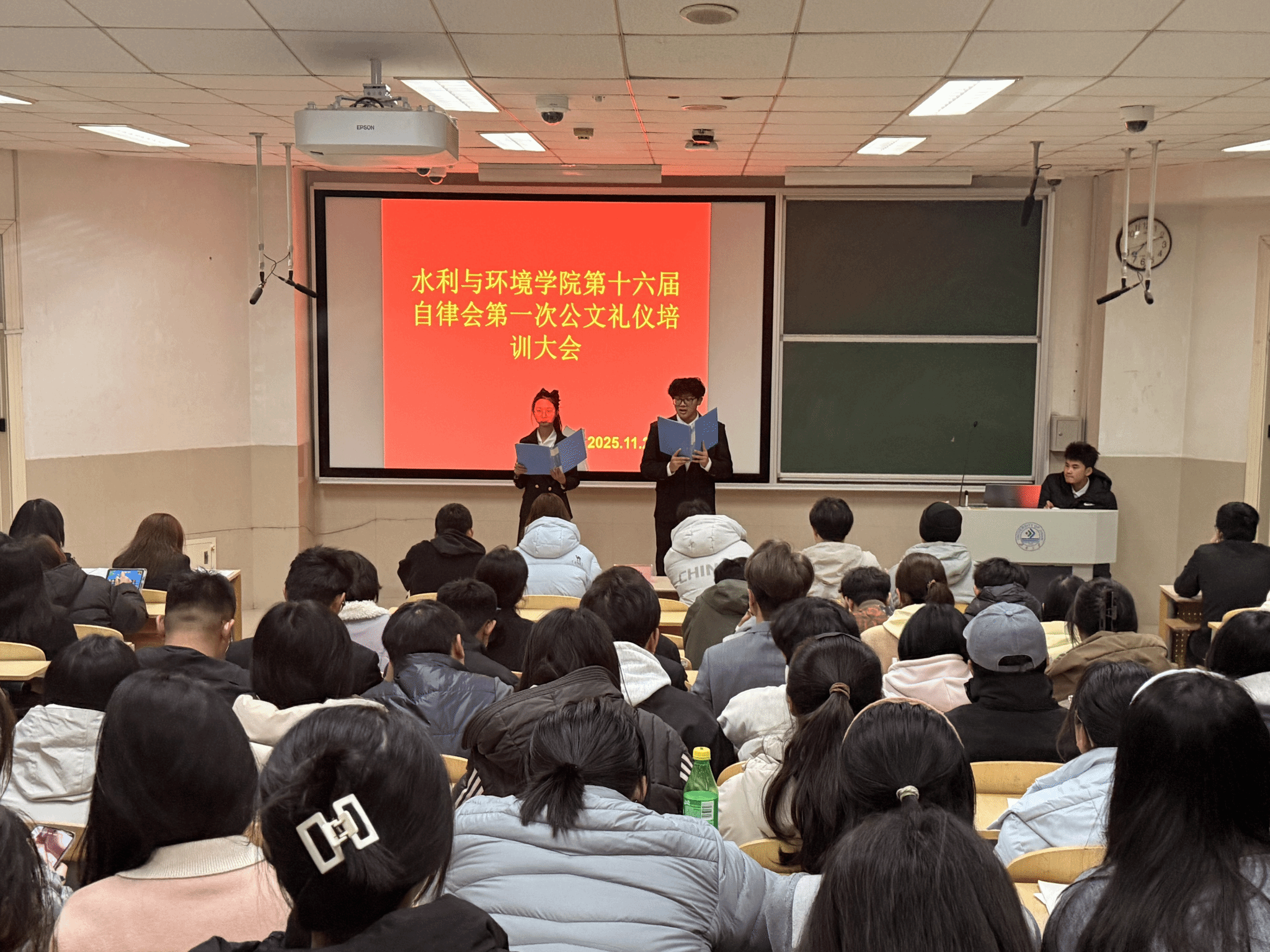 为了提高自律会全体成员的公文写作能力,使学生骨干更好地投入到部门工作中,WilliamHILL中国自律会于11月23日晚七点在第十一教学楼3段102举办第十六届WilliamHILL中国自律会公文礼仪培训大会,WilliamHILL中国自律会全体成员参与了此次会议。