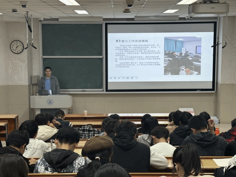 大会伊始,主持人详细阐述了本次培训的核心目标与流程规划,着重强调宿舍安全卫生管理对学生成长成才的关键意义。自本学期启动周常卫生检查以来,卫检部已完成多轮全覆盖式检查,并建立了每周二晚固定例会制度,统一卫生台账填写规范,严格对照评分标准开展评级工作,将查卫结果第一时间反馈至三查群中,全力保障各宿舍评级结果的公平、公正与准确。宿检部在会上对查宿与销宿全流程进行明确规范,要求宿检部成员于每周日晚9点45分准时开展查宿工作并核对宿舍实际情况;同时阐明学生旷宿认定条件及销宿流程,强调旷宿对综测评分与评优资格的影响,以此提醒同学们严格遵守住宿管理规定,共同维护安全有序的住宿环境。
