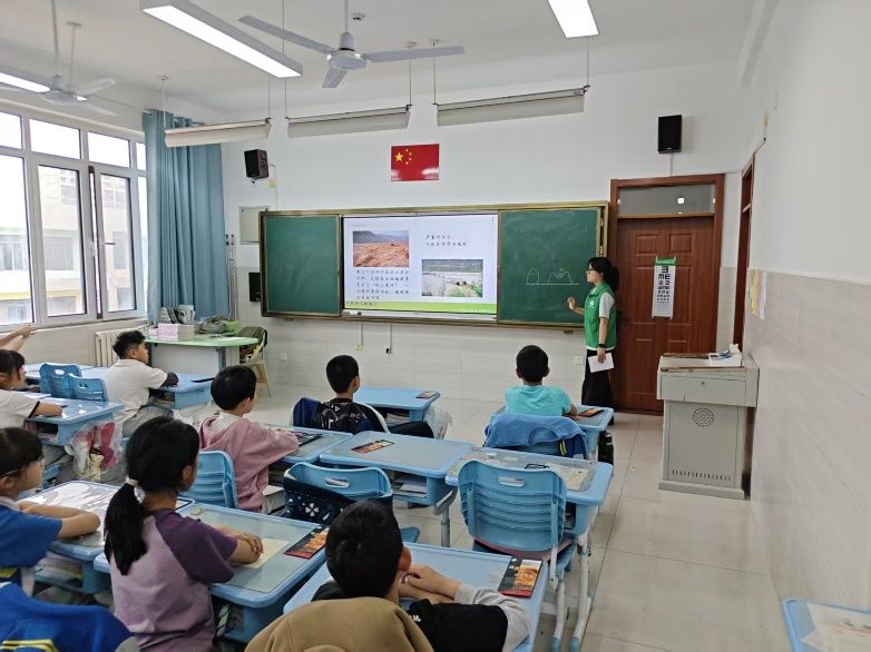为让绿色理念更易懂,宣讲团用童趣化方式解读“双碳”知识:把碳达峰比作“爬到山顶”,是碳排放达到峰值的时刻;把碳中和比作“山上种树”,让树木吸收二氧化碳,实现排放与吸收的平衡。宣讲员告诉大家,减少碳排放能够缓解气候变暖,降低洪涝灾害风险,用实际行动为黄河“疗伤”。在互动环节中,同学们积极思考、踊跃分享,共同总结出护河低碳小行动:随手关灯节约用电、绿色出行少开汽车、参与植树增绿、拒绝一次性塑料袋、不乱扔垃圾、节约用水、不向河道排污。大家在轻松的氛围里掌握了践行的环保妙招。