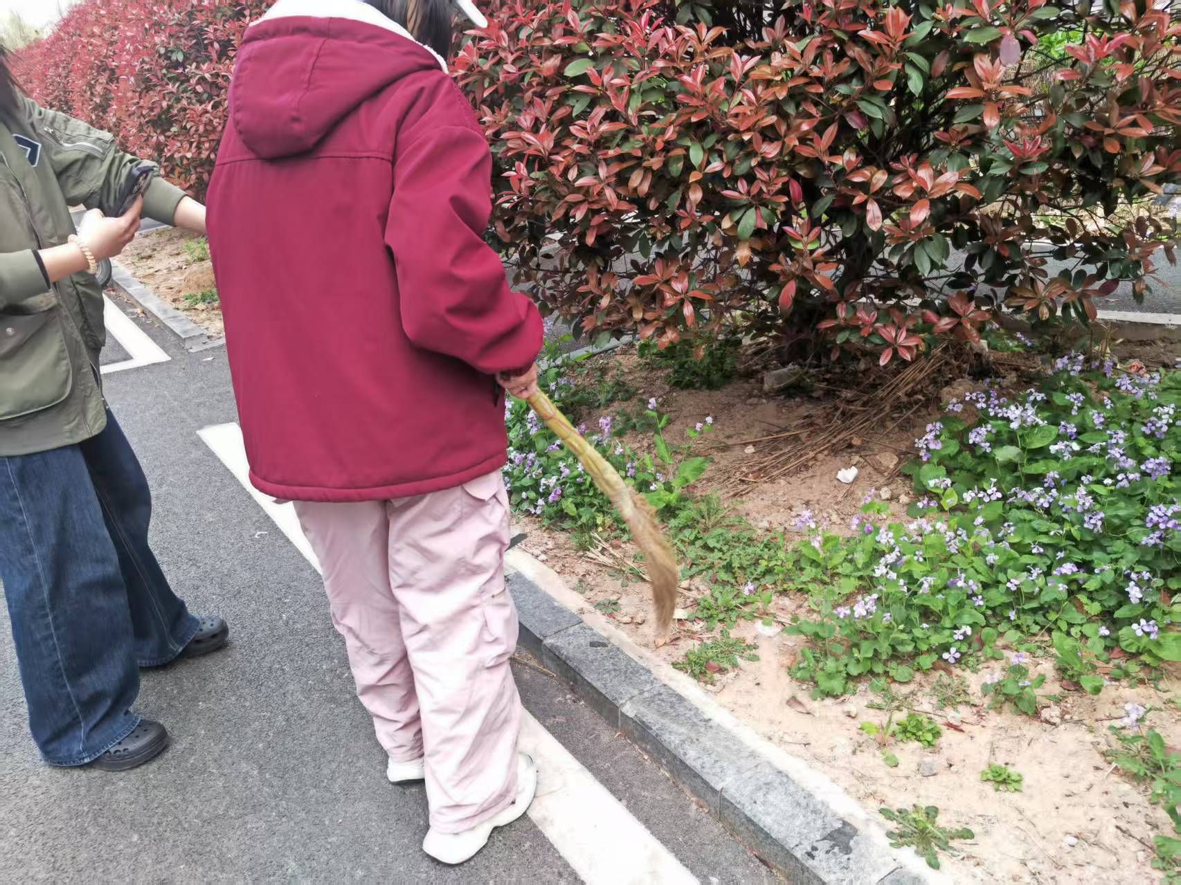 随后,志愿者们按照分组迅速行动,对社区道路、绿化带、公共活动区域等重点区域开展全面清扫。大家手持工具,认真捡拾路面纸屑、烟头、塑料瓶等垃圾,细致清理绿化带内的杂物与卫生死角;针对社区养犬环境问题,志愿者们也耐心清理了公共区域的宠物粪便,并向过往居民宣传文明养犬、爱护环境的理念,引导居民共同维护整洁有序的社区环境。活动过程中,志愿者们分工协作、干劲十足,不怕脏、不怕累,用实际行动践行志愿精神,成为社区里一道温暖的青春风景线。