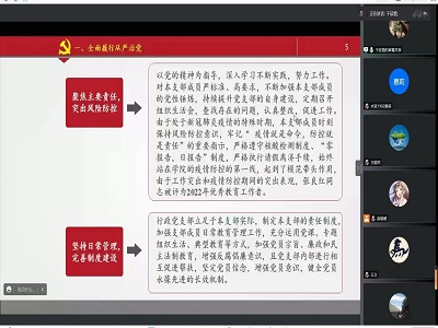 为一步压实党支部书记履行全面从严治党责任,推动全面从严治党向基层延伸,切实提高党支部建设质量,12月13日,学院召开2022年度党支部书记履行全面从严治党责任和抓基层党建工作述职评议线上工作会议。学院党委委员、党支部书记及党支部全体成员等参加了会议。会议由学院党委书记王义主持。