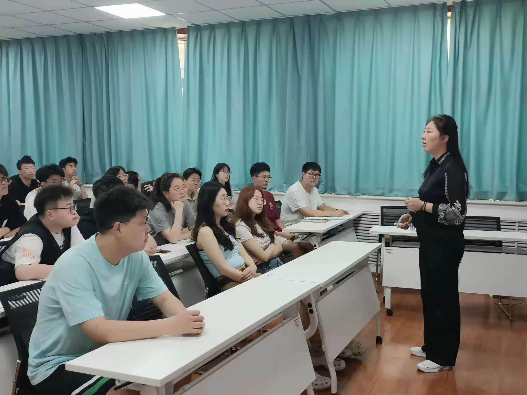 张良红老师深入剖析干部违纪违法典型案例,教育引导毕业生要始终时刻牢记习近平总书记殷切嘱托,深刻认识违纪违法的危害,提前筑牢拒腐防变防线,倡议全体毕业生扣好廉洁从业“第一粒扣子”,始终坚定信念、不忘初心,严守纪律规矩,守好底线,做到自重、自省、自警、自励。