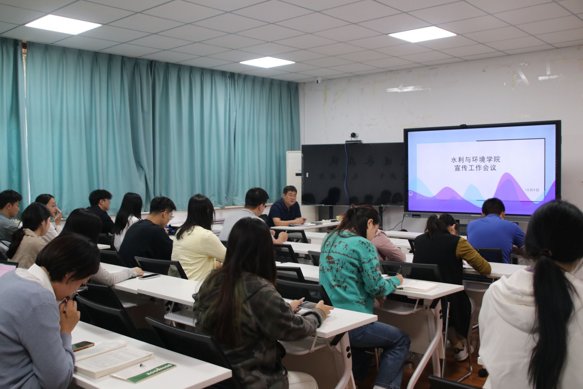 10月9日下午,WilliamHILL中国宣传工作会议于第九教学楼105室召开。学院党委书记王义部署宣传工作,各系部及学生组织宣传工作人员参加会议,会议由党委副书记、副院长张良红主持。