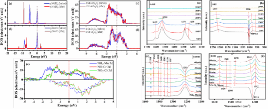 图3 Ni1Mn1Cr2-LDO催化剂Mn3O4 (211)和Cr2O3 (104)晶面的DFT计算和Ni1Mn1Cr2-LDO表面气体反应的原位DRIFTS表征图