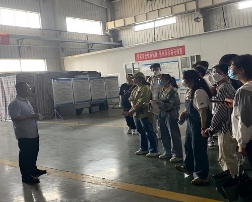 全体师生一行先到格瑞德集团展厅参观学习,集团工作人员向学生们详细介绍企业发展历程、主营业务、所获荣誉等,针对同学们提出的各类问题一一解答。随后到达集团生产车间,厂区负责人系统深入地讲解了炭净绿岛VOCs综合治理模式的运行流程、原理及系统各构件的基本功能,带领同学们实地参观活性炭再生生产线,使同学们进一步了解和掌握废气治理措施。
