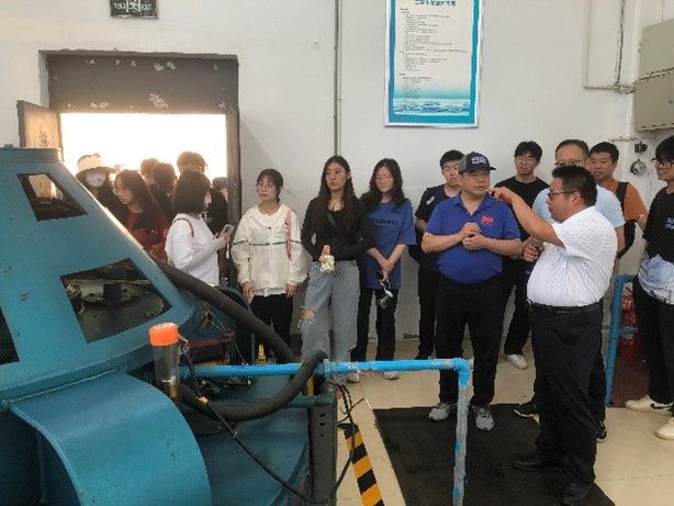 在宋庄泵站、王耨泵站,学生们参观了泵站水情教育基地、主副厂房,相关工作人员结合工程现场讲解了泵站工程的建设与发展历史、工程运行概况、主要设备及工作原理和电气设备、水机设备以及自动化设备组成与联系。在弥河西堤渠道工程现场,管理站工作人员向学生们详细介绍了寿光至昌邑地区降雨与地下水特点、引黄济青与胶东调水工程的建设初衷、调水工程概况以及闸门样式与技术参数等。在弥河分流闸与鹿家橡胶坝,工作人员同带队教师一起向同学讲解了河道闸坝的类型、工作原理以及分洪泄洪调度规则。在白浪河下游河段,同学们在带队教师的指导下完成了典型河段河道调研以及断面和流速测量工作,熟练掌握了先进水文与遥感测量设备的使用与技术要点。