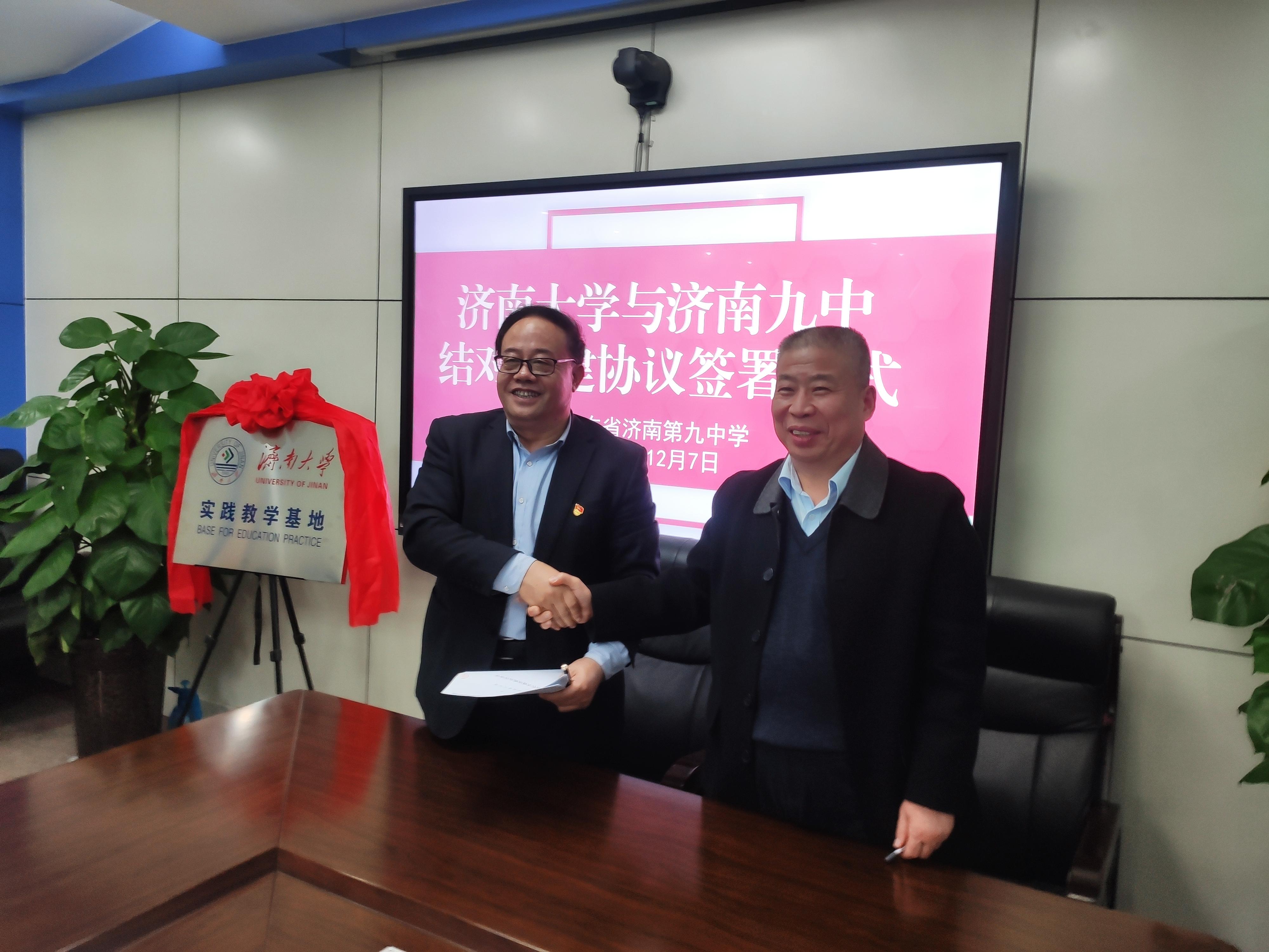 会上,苗翠强校长与徐征和院长共同签署《williamhill—山东省济南第九中学合作共建战略合作协议》和《williamhill本科实践教学基地建设协议》。韩东副校长和庞桂斌副院长共同为williamhill本科实践教学基地揭牌。双方商定,依托山东省济南第九中学的组织、平台和教育教学资源,以及WilliamHILL中国的科研、学科和人才优势,双方在人才培养、学生研学、决策咨询、教育教学等方面开展多元化、立体化的合作交流。本次战略合作对于推动学院服务社会、提高人才培养质量具有重要意义,实现了高校、高中、学生三方共赢。