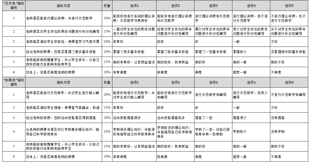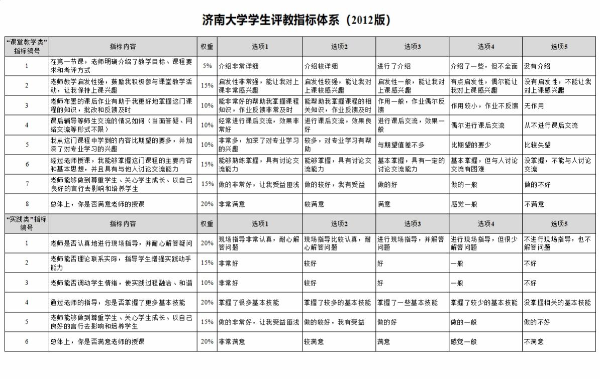 williamhill学生评教指标体系(2012版)