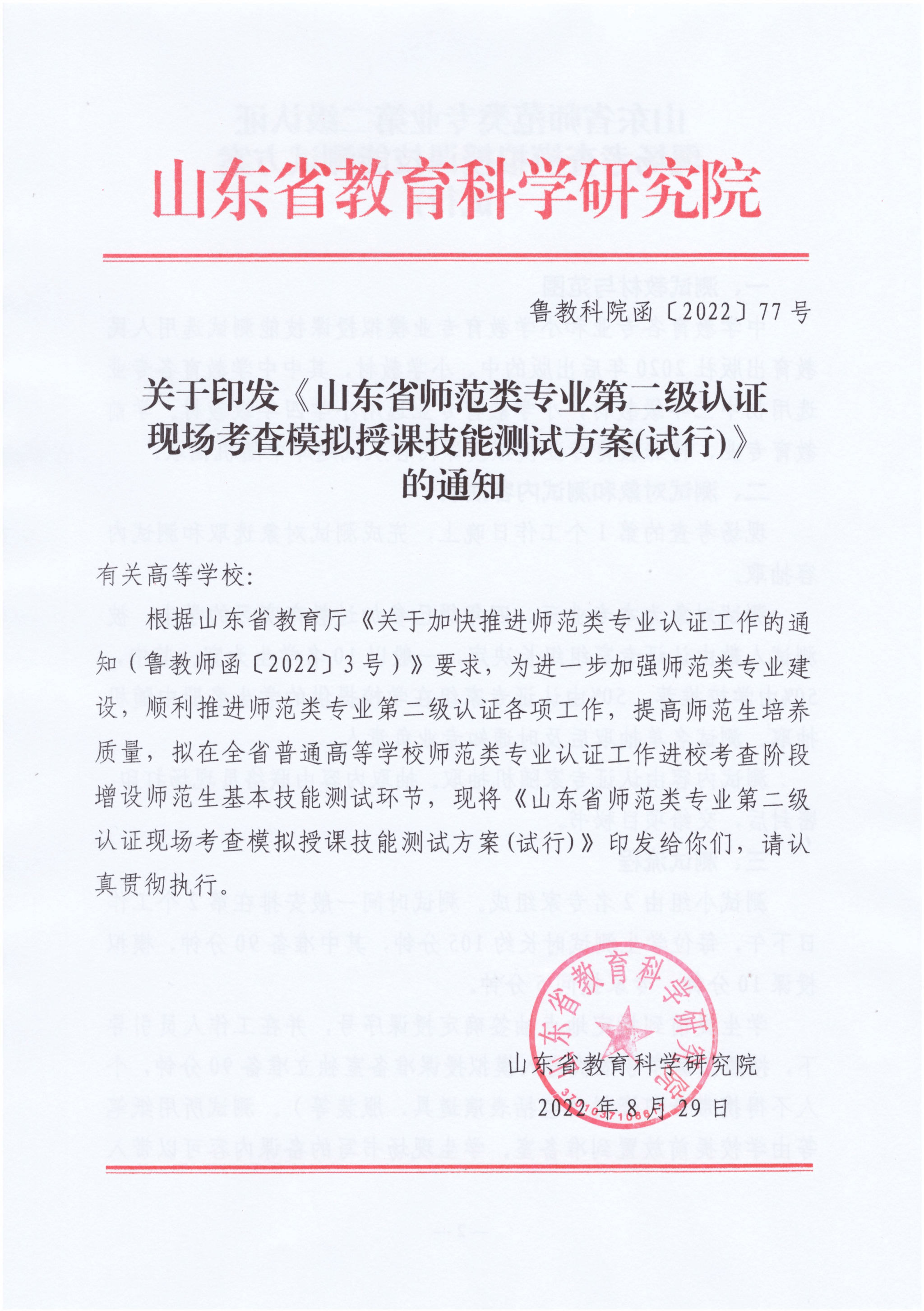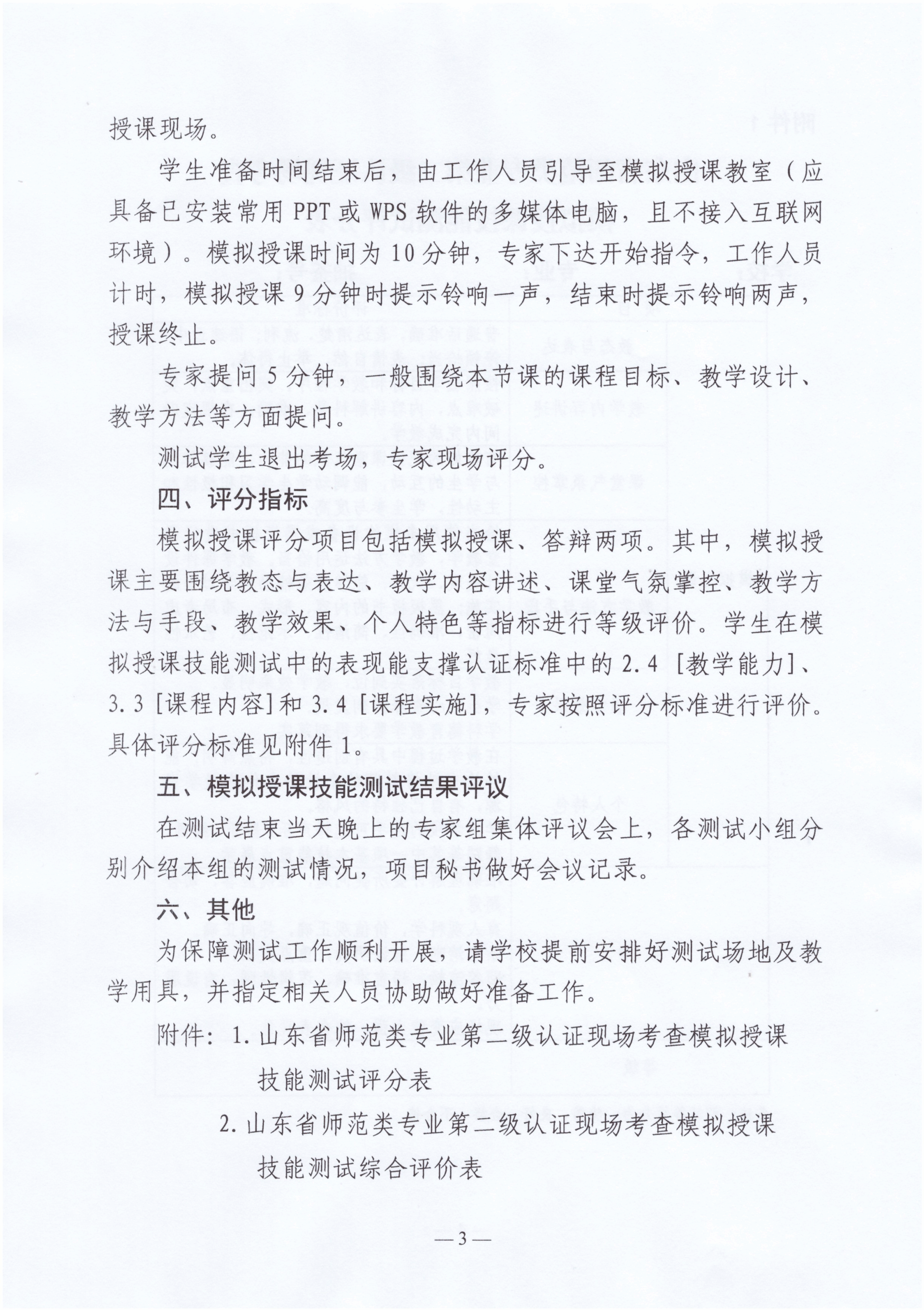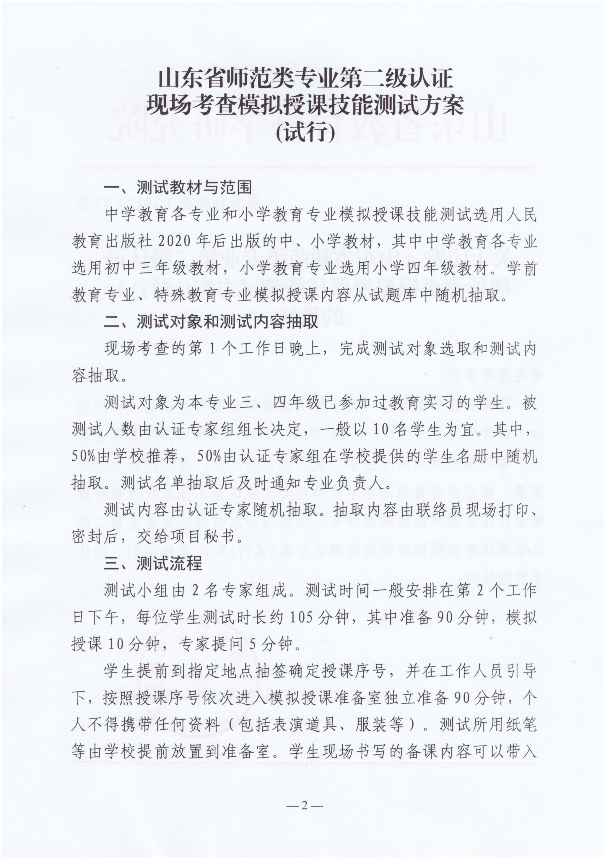 关于印发《山东省师范类专业第二级认证现场考查模拟授课技能测试方案(试行)》的通知